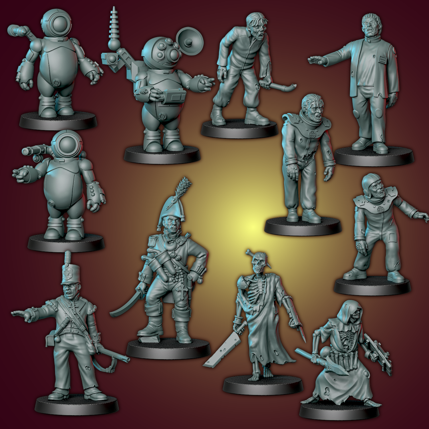 An eclectic mix of models now available in the store. Modular robots, Napoleonic soldiers, skeleton and space zombies.